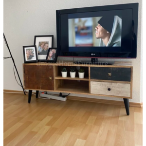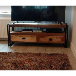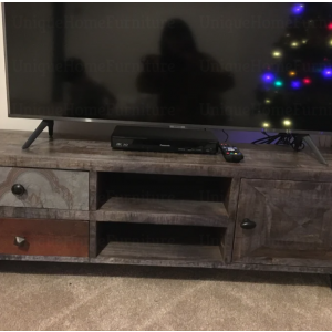 Rustic TV Stand Vintage Retro Media Cabinet Unit Small Solid Wood Industrial Storage Drawer