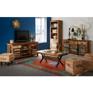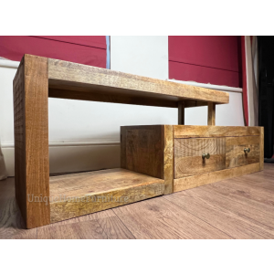 Rustic TV Stand Scandinavian Media Unit Solid Wood Coffee Table
