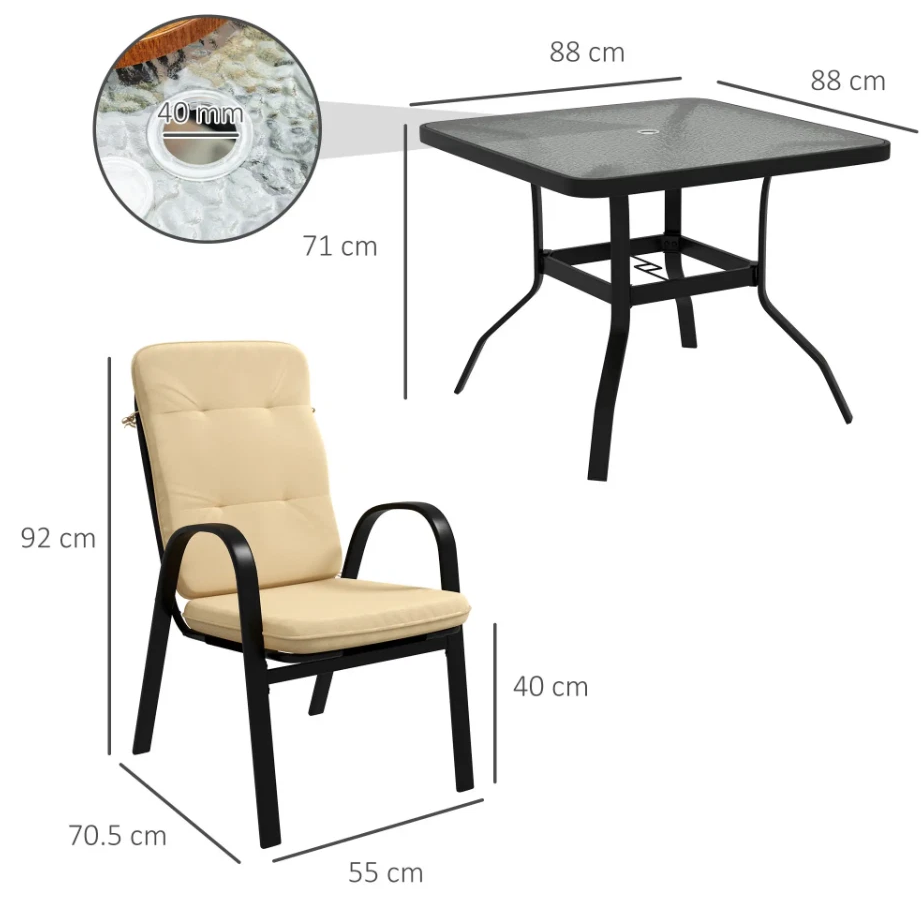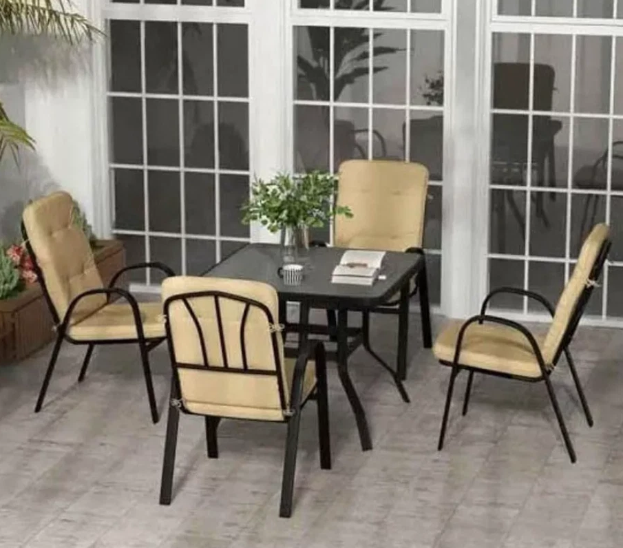 Upgrade your outdoor gatherings with this stylish modern and comfortable 4 Seater Garden Furniture Set. Featuring a sleek tempered glass table and four cushioned armchairs, it’s perfect for enjoying meals, drinks, or casual chats in the fresh air. Built with durable steel frames, each piece offers reliable strength and long-lasting use. The chairs include high backs, supportive armrests, and plush padding for extra comfort.