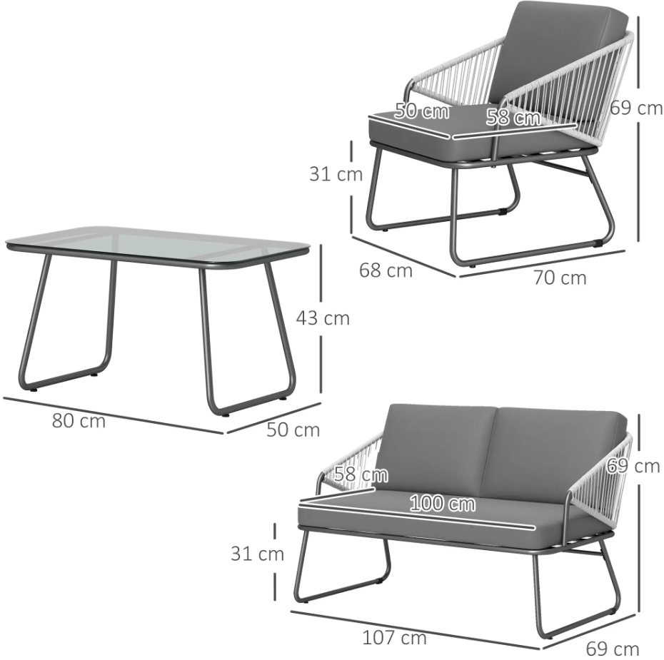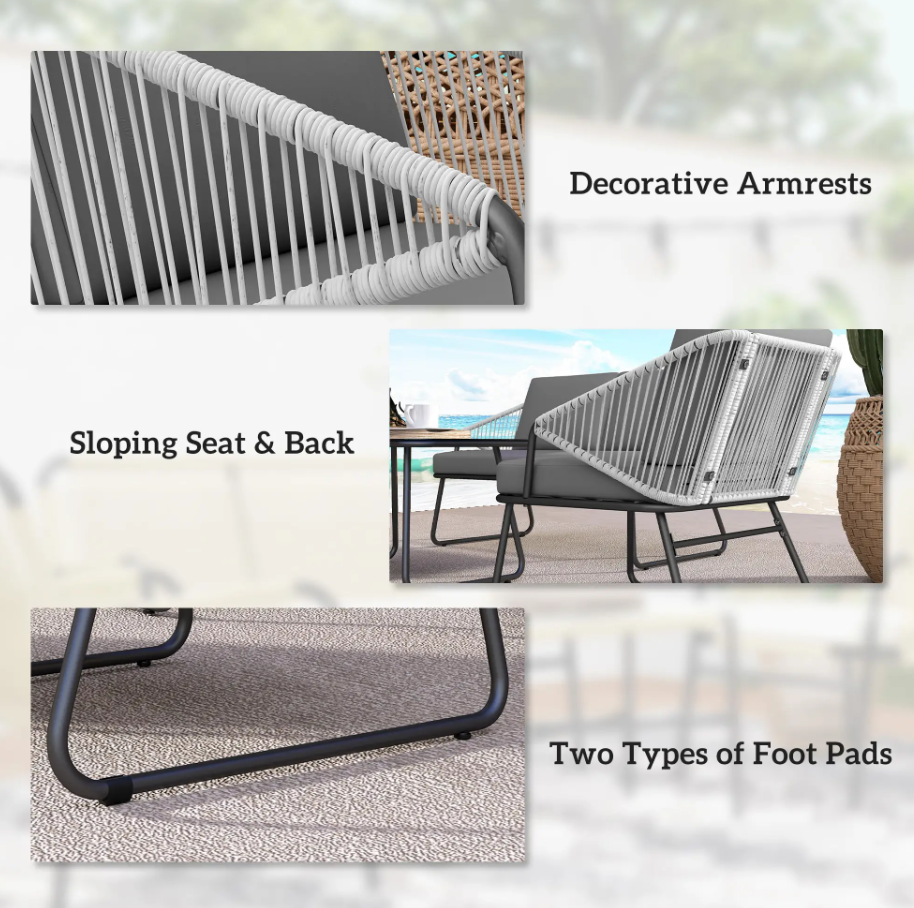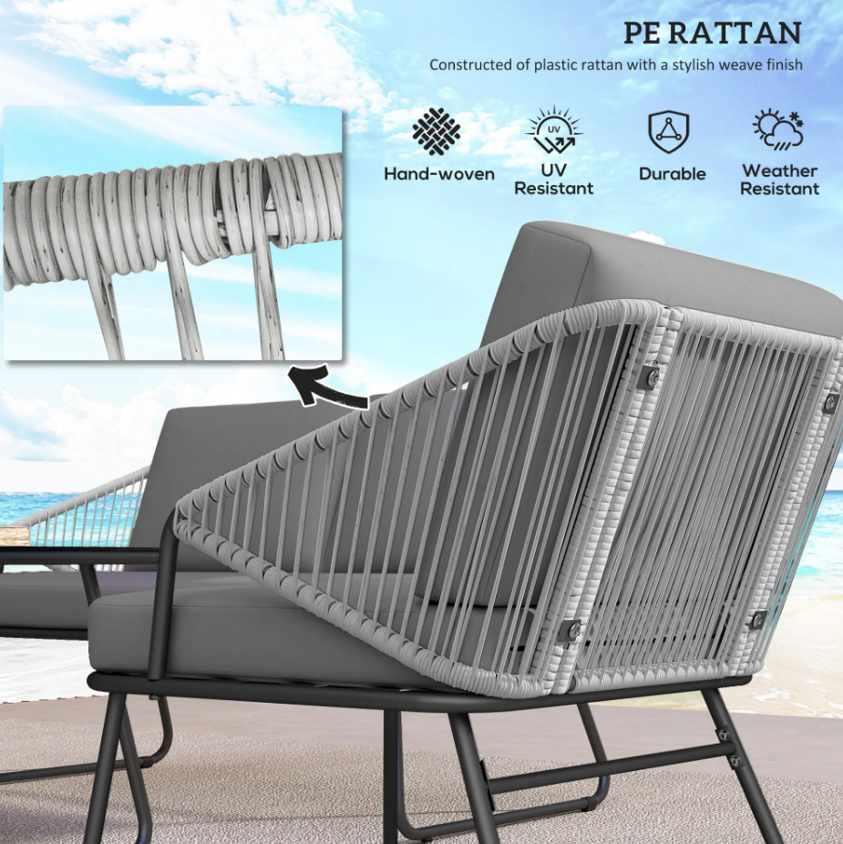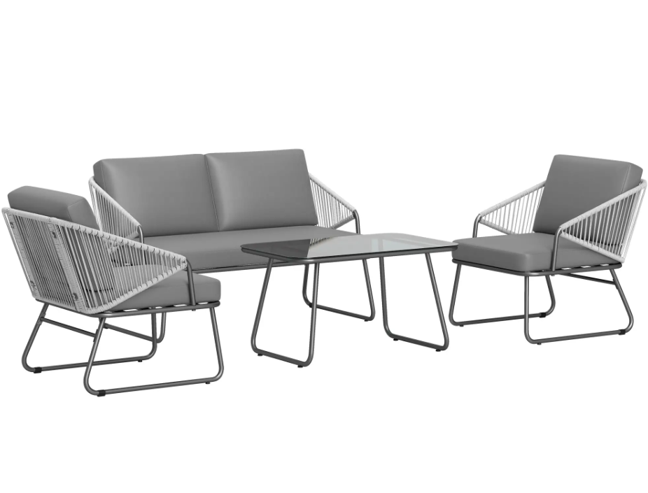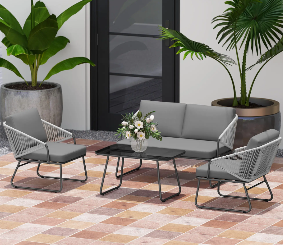 Upgrade your patio or garden with this elegant rattan Conservatory Patio Furniture, designed for both style and comfort. This 4-piece outdoor Conservatory Patio Furniture includes a two-seater loveseat, two armchairs, and a matching glass-top coffee table—perfect for relaxing or entertaining in any outdoor setting. Each piece features a durable, powder-coated steel frame for reliable support, wrapped in weather-resistant PE rattan that adds a contemporary touch while standing up to the elements.
