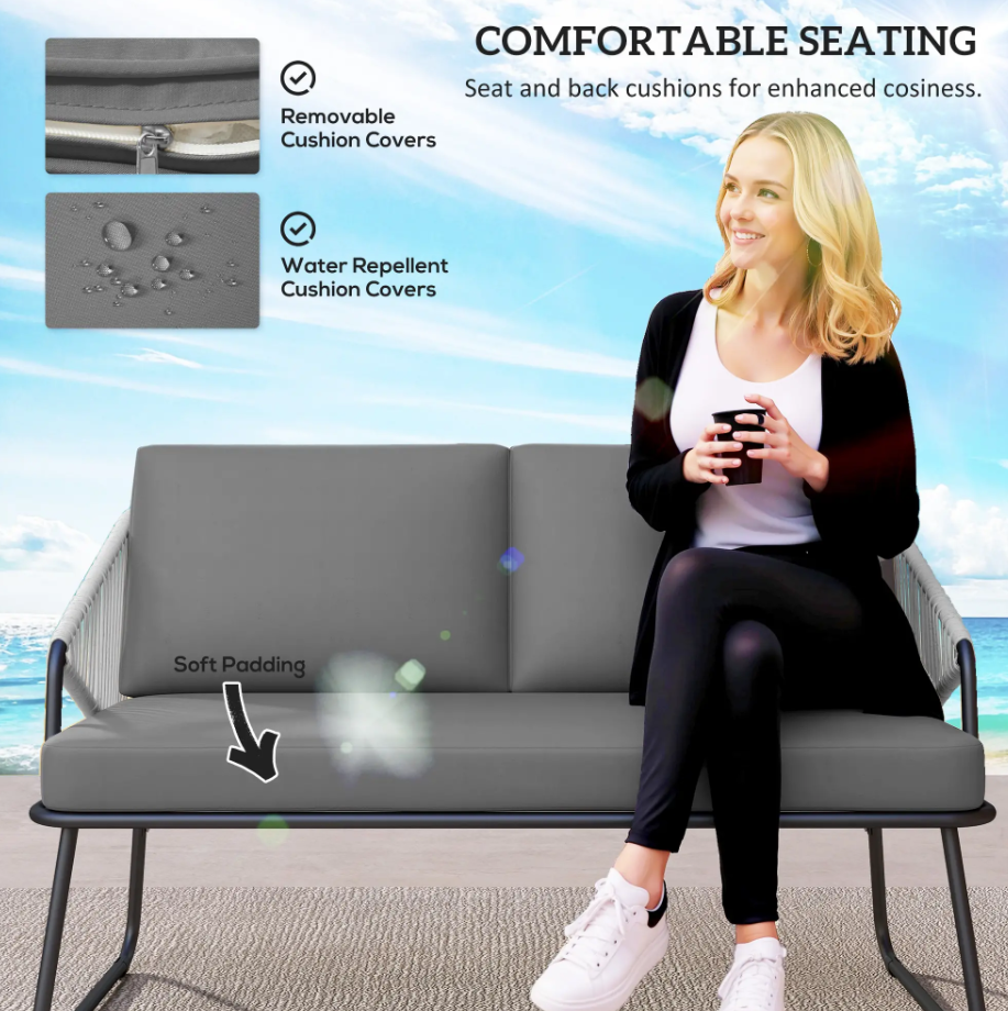 The Conservatory Patio Furniture set includes thick, padded seat and back cushions for superior comfort, with removable and washable covers for easy maintenance and lasting freshness.