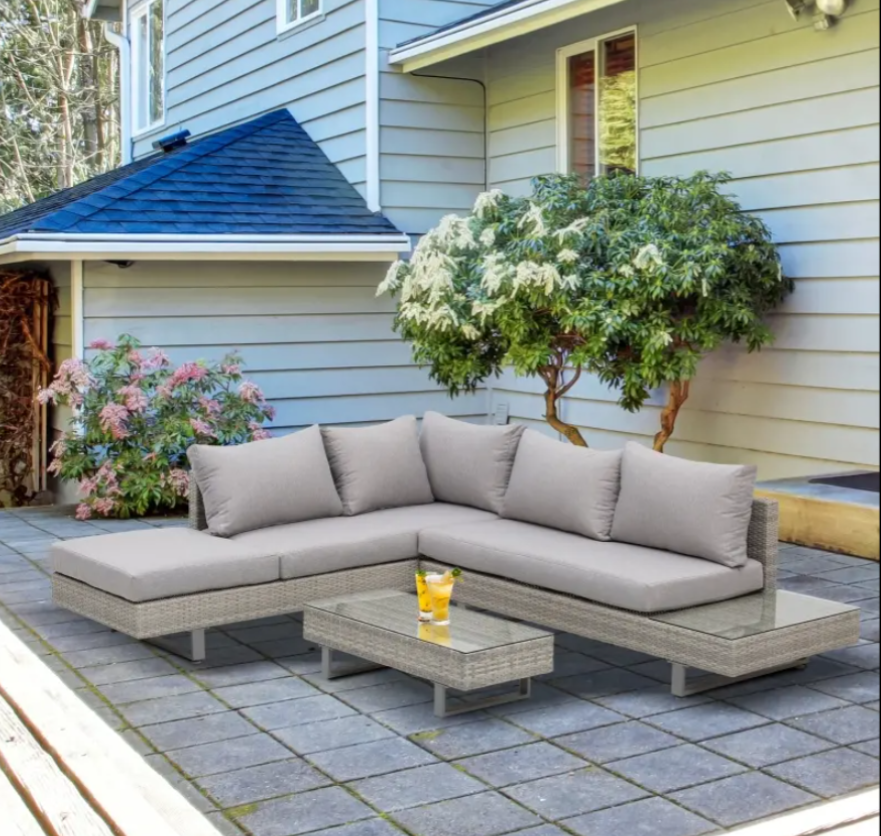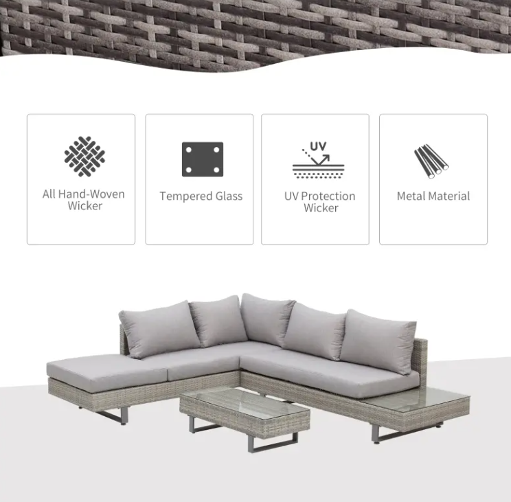 Corner Rattan Garden Furniture Grey Patio Sofa Set Conservatory Lounge Wicker Table