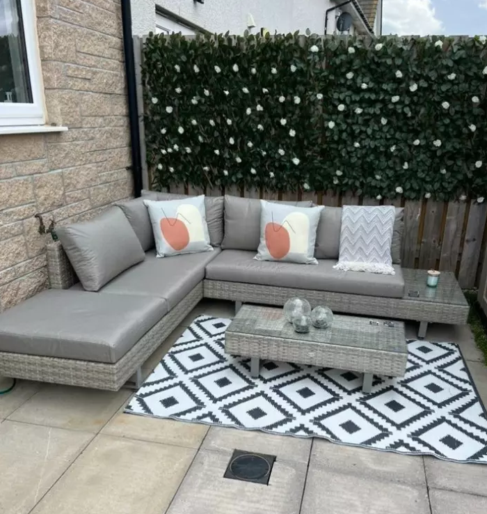 Thick padded cushions on the seats and backs ensure you’ll be relaxing comfortably for hours on end. Moreover this Corner Garden Furniture finished with a small end table on the two-seater for additional holding room. This Corner Garden Furniture supplied flat pack for self assembly.
