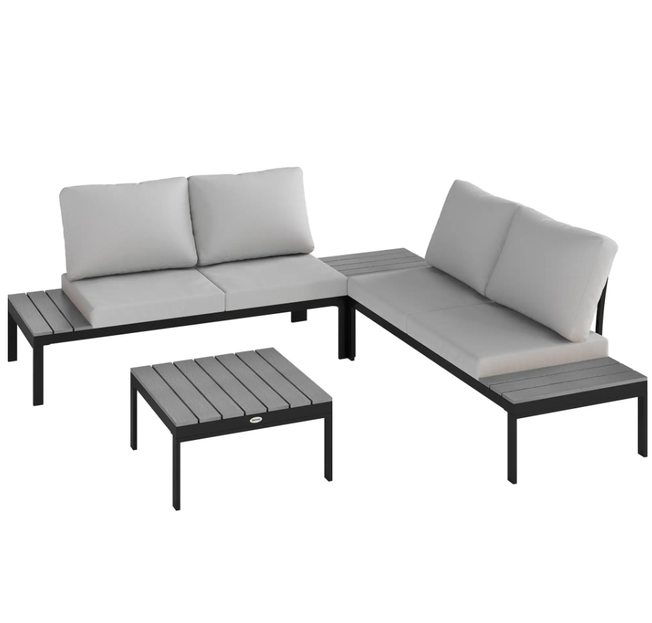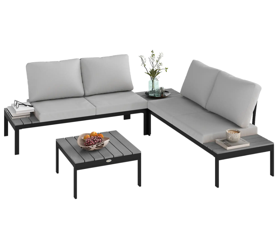 Corner Garden Sofa Set Outdoor Patio Furniture Metal Lounge Deck 4 Seater Table