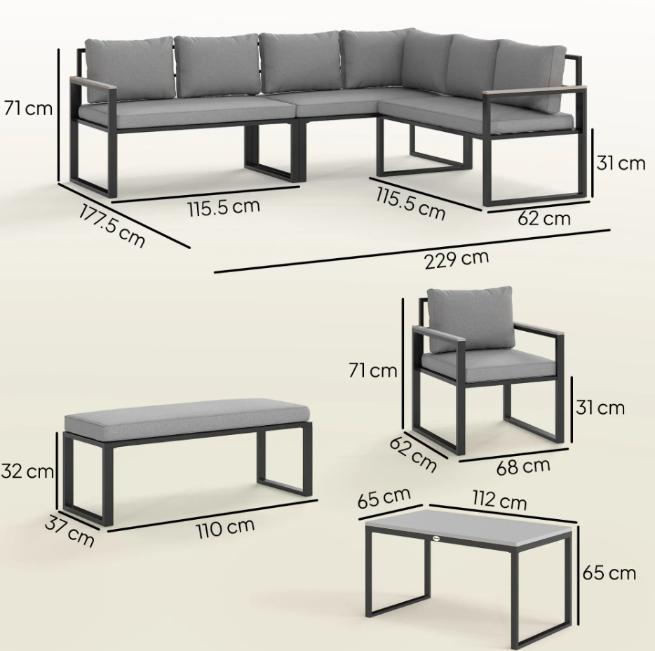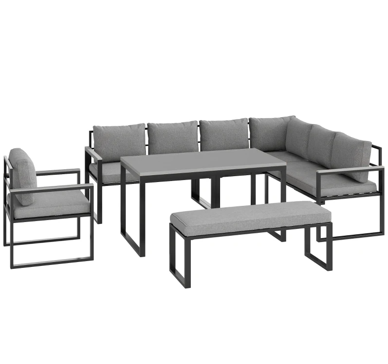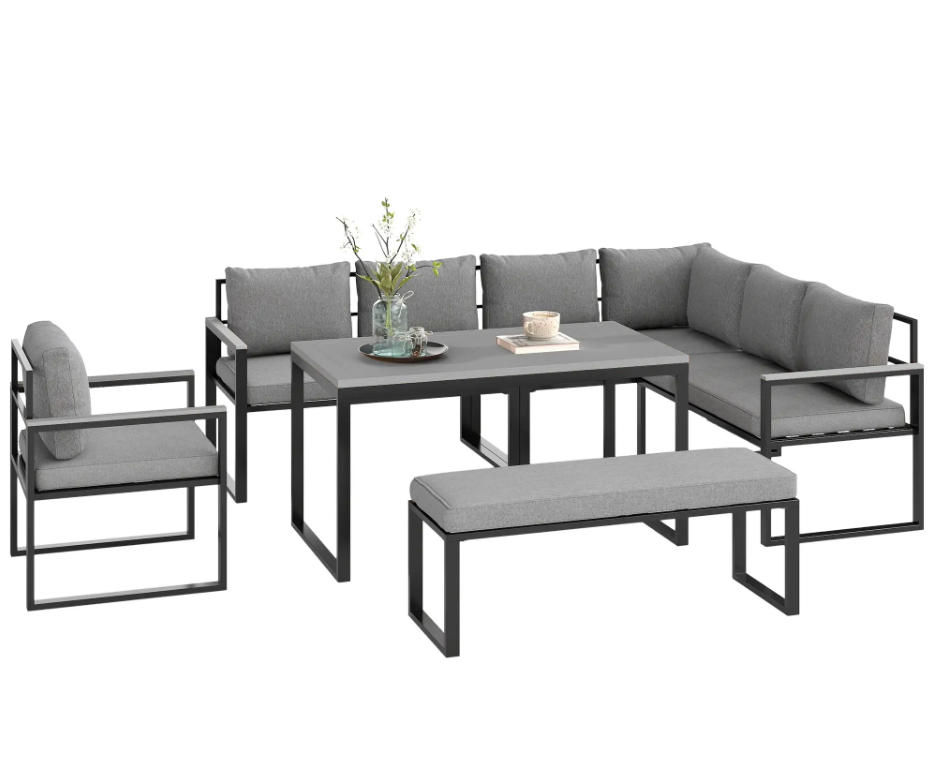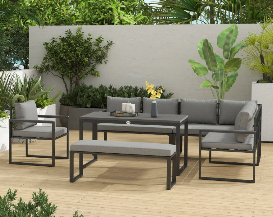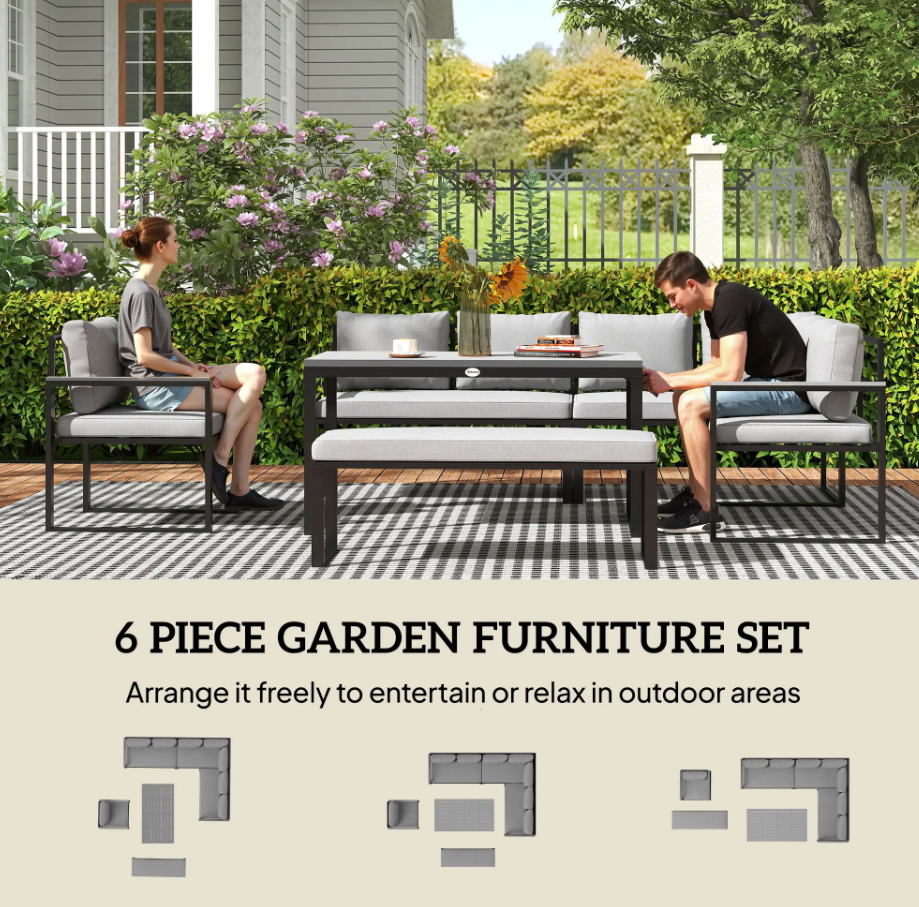Turn your garden, patio, or conservatory into a relaxing retreat with this versatile Garden Patio Furniture Set. Complete with three loveseats, a cozy armchair, a stylish coffee table, and a multifunctional bench that doubles as a footstool, this set offers generous seating and plush, thick cushions for maximum comfort.