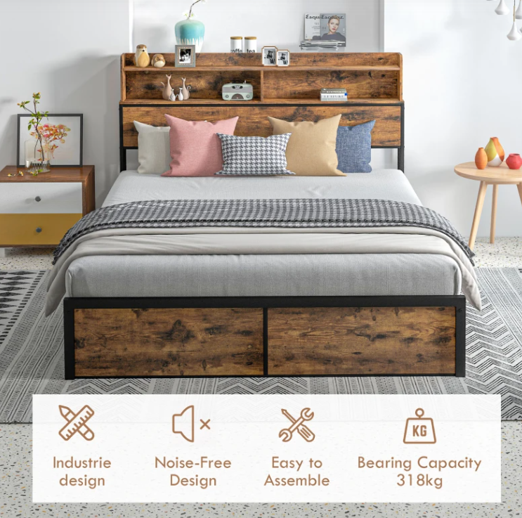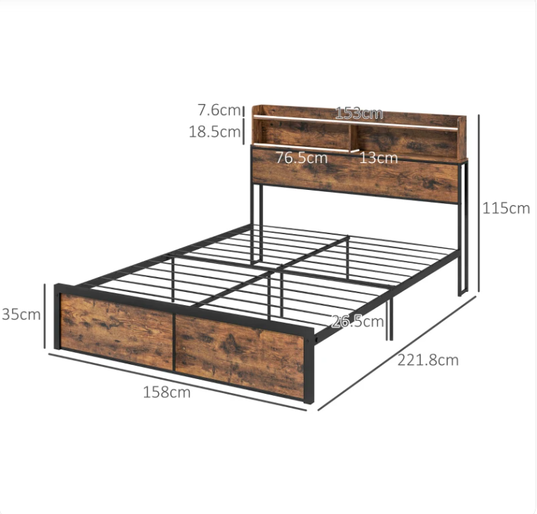 Weight Capacity: 318kg (bed frame), 10kg (shelf)