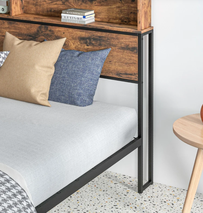 Revive Your Dream Space with this Large Bed Frame. Elevate your bedroom’s ambiance with a touch of retro charm, courtesy of the Large Bed Frame. Its industrial-inspired styling lends itself seamlessly to a wide range of interior decor themes, adding a unique and timeless flair to your personal sanctuary. Crafted from durable steel, this Large Bed Frame ensures unwavering support, promising a firm yet comfortable surface for your mattress. The slat construction not only reinforces stability but also enhances the overall sleep experience. For added convenience, the bed frame incorporates a headboard storage rack, offering a designated space for your essentials such as your phone, glasses, and books, allowing you to maintain a clutter-free and organized bedroom. Rediscover the art of restful sleep and aesthetics with the Retro Metal Bed Frame—a stylish and functional addition that rejuvenates your dream times with ease.