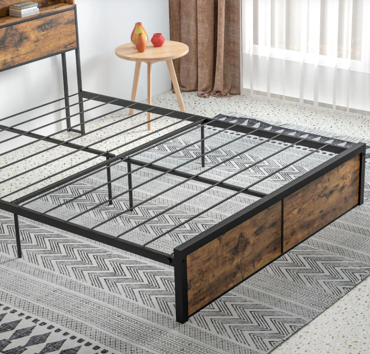 Large Bed Frame King Size Bedroom Furniture Rustic Metal Industrial Headboard