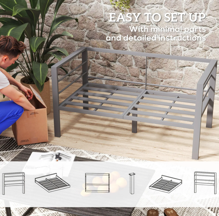 Enjoy cozy outdoor moments with the two-seater Metal Garden Bench — the perfect addition to any patio, balcony, or backyard. Built with a durable, rust-resistant aluminium frame, this outdoor Metal Garden Bench is designed to handle the elements while offering long-lasting support. Its sleek, modern box-style silhouette adds a touch of minimalist charm to your exterior space.