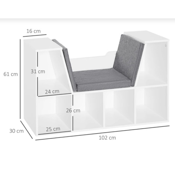 Your quest for the ultimate home reading nook can now be fulfilled with this Modern Storage Bench. Constructed from sturdy particle board, this reading haven is built to endure the test of time. The seat’s base showcases an innovative design, incorporating six open cubes that offer convenient storage solutions. What sets it apart is the thoughtfully engineered curved cut-out seat, complemented by a plush padded cushion, ensuring hours of comfortable and immersive reading experiences.