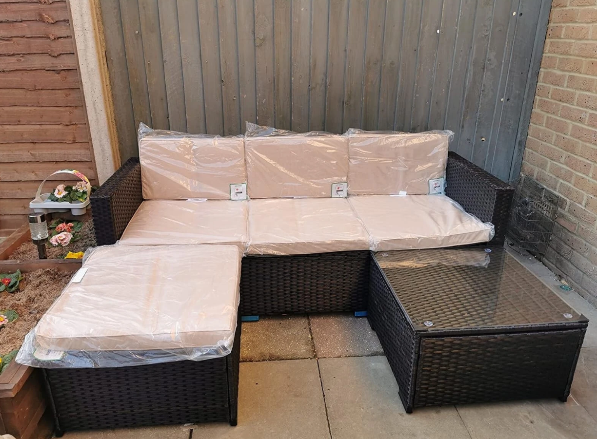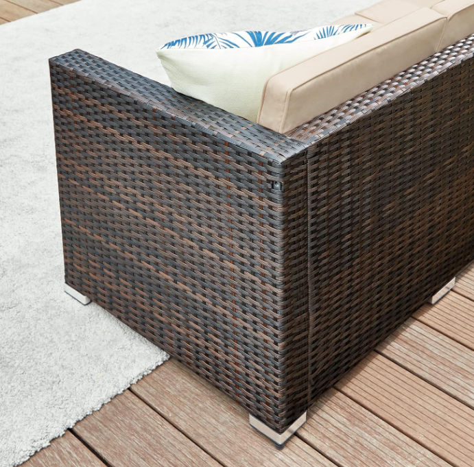 Bring a refreshing and elegant vibe to your garden, patio, balcony, or poolside with this beautifully designed PE rattan outdoor Rattan Corner Sofa Set. Its contemporary woven look adds a warm and inviting touch to any outdoor space—perfect for relaxing, entertaining, or unwinding in style. Engineered for easy assembly, the set includes pre-drilled holes, fewer components, and clear step-by-step instructions, so you’ll have it ready in no time—no frustration, just satisfaction and celebration once it’s done!