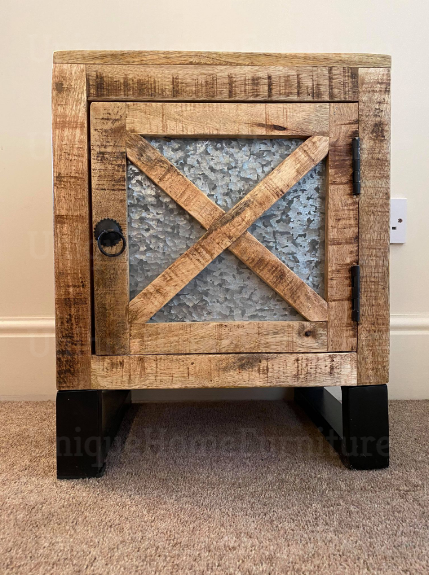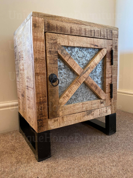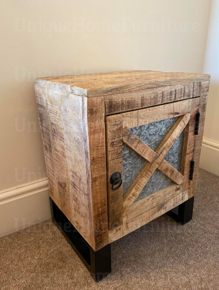 Rustic Bedside Table Vintage Industrial Door Solid Wood Metal Cabinet Unit