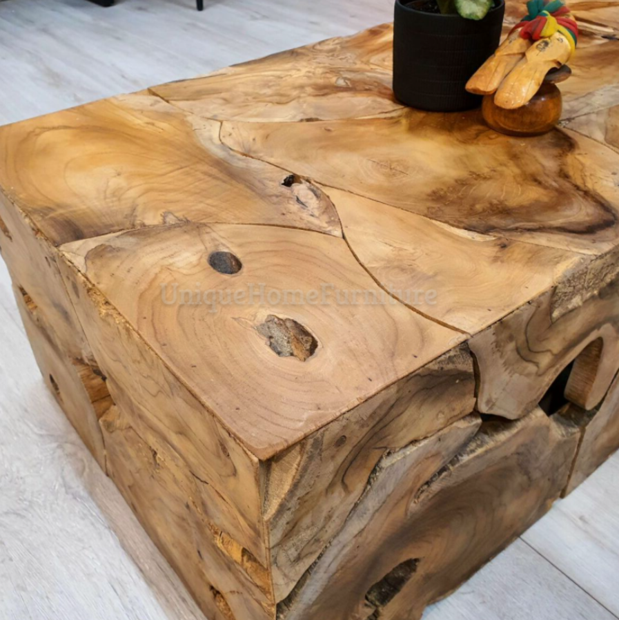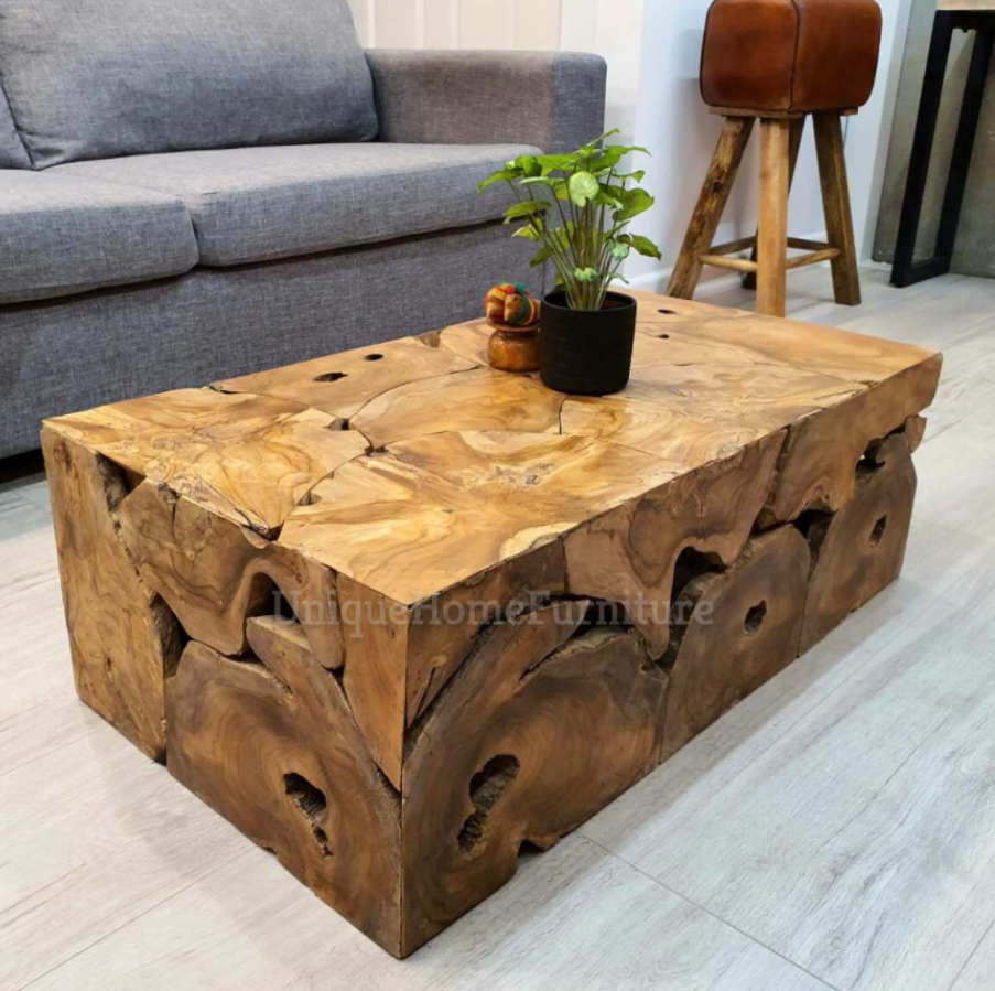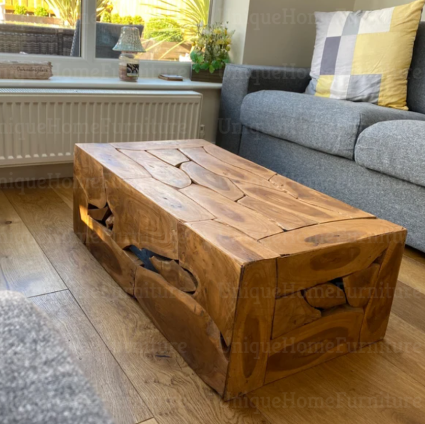 This unique Rustic Coffee Table will make a great addition to your interior design. It constructed from solid teak wood which is sturdy and durable. In Addition it will provide a stable and secure surface on which you can place your drinks, vases, fruit bowls or other decorative items.