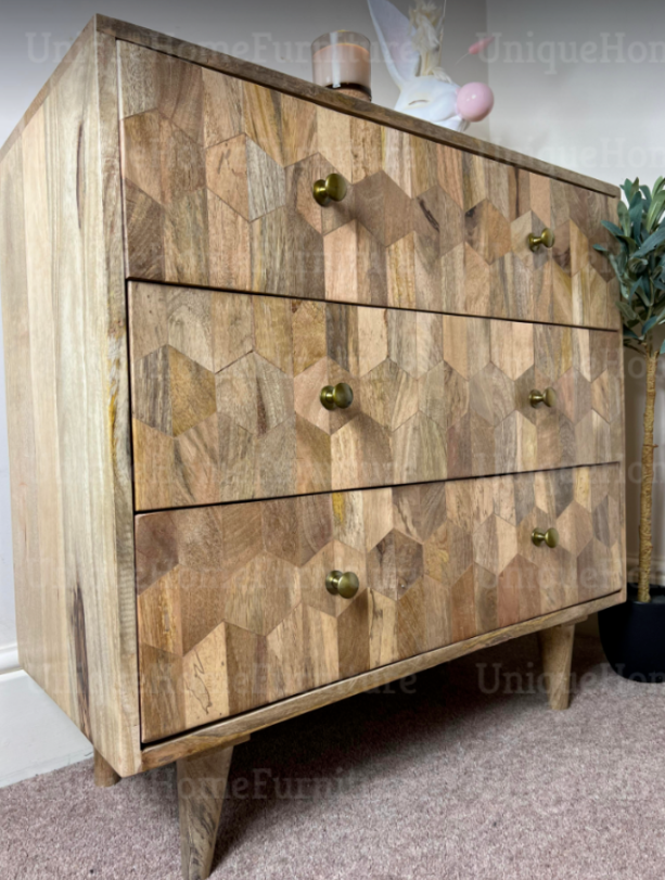 This Scandinavian Chest of Drawers will make a great addition to your interior design. It constructed from solid mango wood which is sturdy and durable. Moreover it features 3 storage drawers provides you ample of storage space. Furthermore, the craftsmanship also adds to its spectacular retro style. Every step of the process is carried out with the greatest care, be it polishing, painting or lacquering. In addition this Scandinavian Chest of Drawers supplied assembled, you will only have to attach the legs and the drawer knobs.