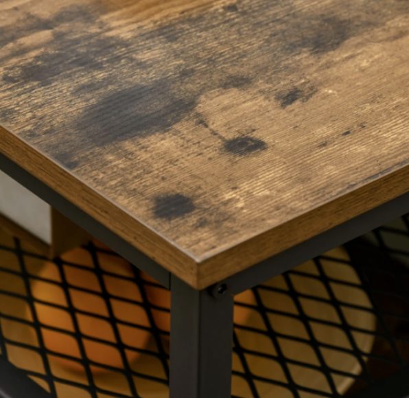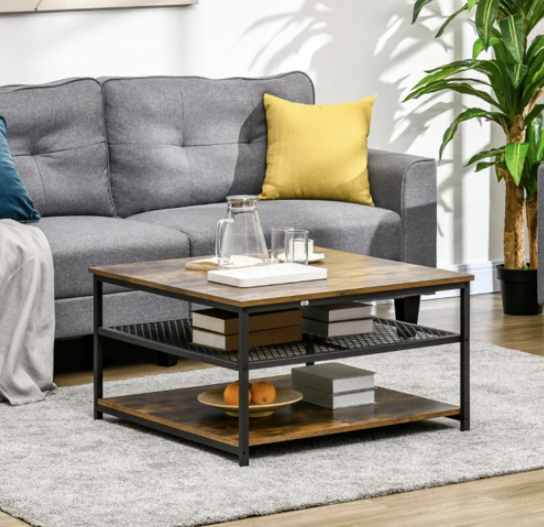 Square Coffee Table Vintage Industrial Storage Shelf Unit Rustic Metal Furniture