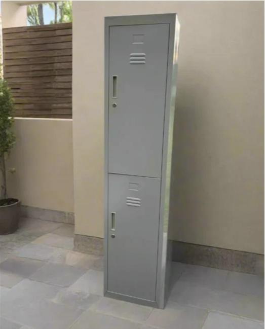 This storage Tall Industrial Cabinet is perfect for keeping everything safe and secure whether that be in an office gym school or your home garage. This Tall Industrial Cabinet is made from solid cold rolled steel. It features two separate locked compartments to cater for two different people. Easily fixable to the wall to ensure it doesn’t topple. It is also anti-corrosive moisture resistant water resistant and fire resistant. Meaning you can be confident everything will be kept safe dry and secure when locked away. This Tall Industrial Cabinet supplied flat pack for self assembly.