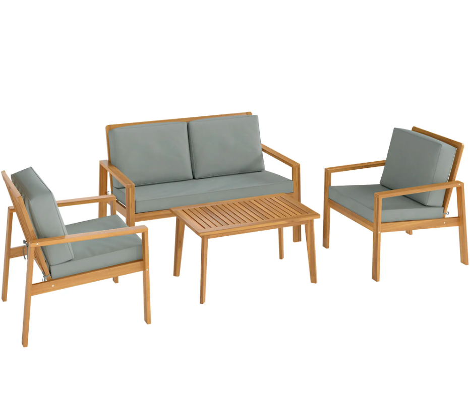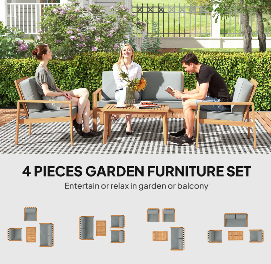 Turn your garden, balcony, or conservatory into a stylish retreat with this elegant 4-piece Wooden Garden Furniture Set. Designed for both comfort and durability, the set includes a 2-seater loveseat, two wide armchairs, and a matching coffee table – perfect for relaxing, entertaining, or enjoying a sunny afternoon.