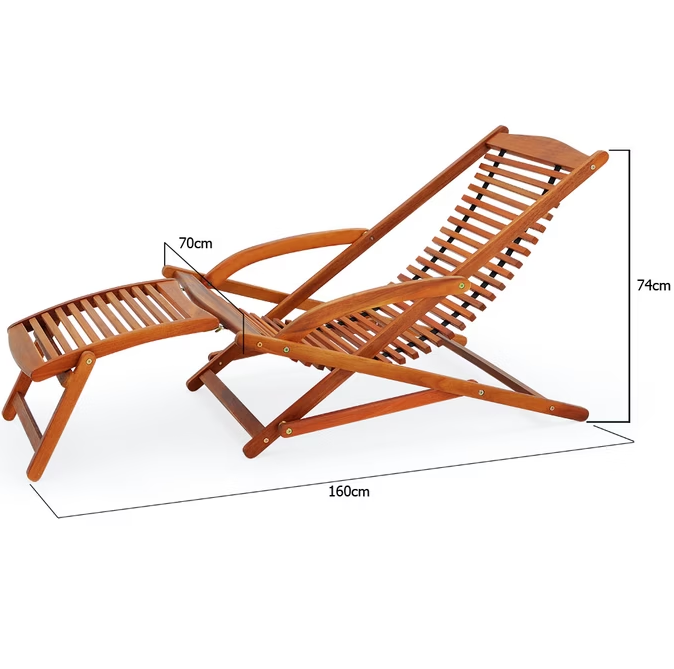 Made from high-grade, FSC-certified acacia wood, this weather-resistant outdoor lounger offers both strength and elegance. The robust folding frame supports up to 160kg, making it ideal for long-lasting use in any outdoor setting.